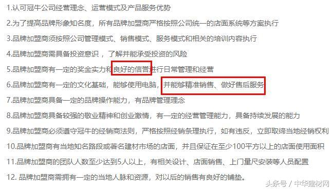 在冠牛的招商加盟条件里面,很清晰列了一条“能够精准销售、做好售后服务”“有良好的信誉”,可见,冠牛对于经销商加盟门槛设置的一番苦心。如果没有良好的信誉,没有做好售后服务的意识和能力,便成不了冠牛的经销商。