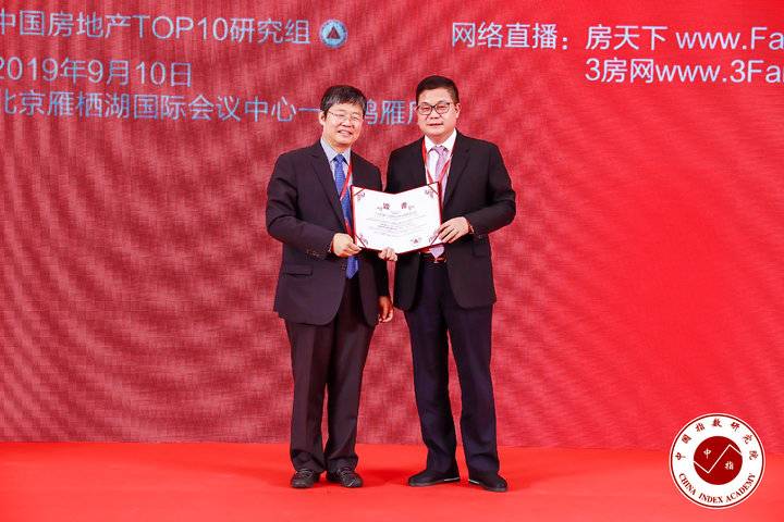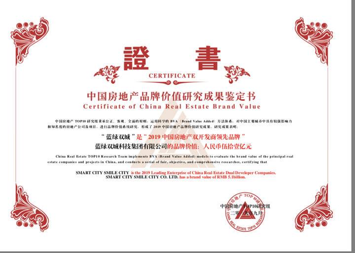 2019年9月10日,2019中国房地产品牌价值研究成果发布会暨第十六届中国房地产品牌发展高峰论坛,蓝绿双城以“双开发商”的姿态首次入榜中国房地产品牌价值,“蓝绿双城”品牌价值达到【51】亿元,企业创始合伙人、董事长曹舟南先生参会并领奖。