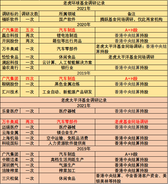 更为“巧合”的是,老虎太平洋更与老虎环球基金曾同时现身于万丰奥威的调研,且前者也曾单独调研广汽集团。