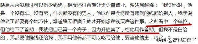 这个事情也让贾晓晨事业尽毁,还一度委屈到患上抑郁症自杀过,但她选择继续与樊少皇在一起。还大方为男友付首期置业,和他一起背起前女友一家三口的赡养费。