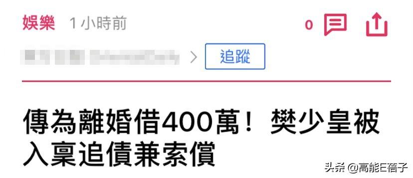 没想到23日,樊少皇又被债主入禀追债及索赔,牵扯出前妻赡养费一事。