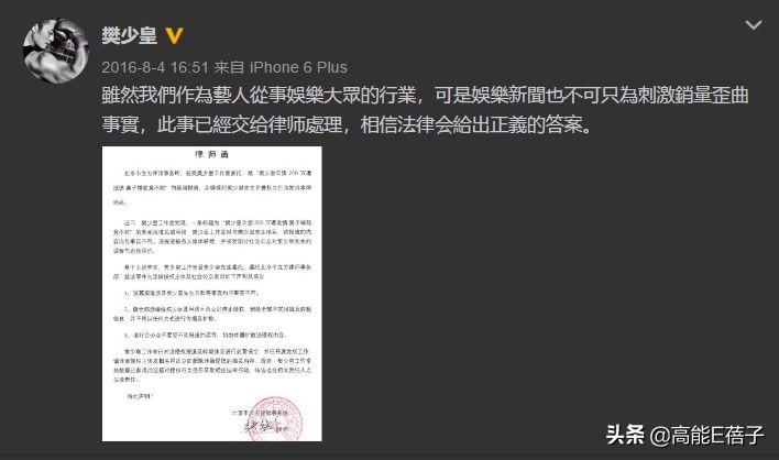 事后樊少皇才出面澄清,欠钱的并非自己,是朋友借的。