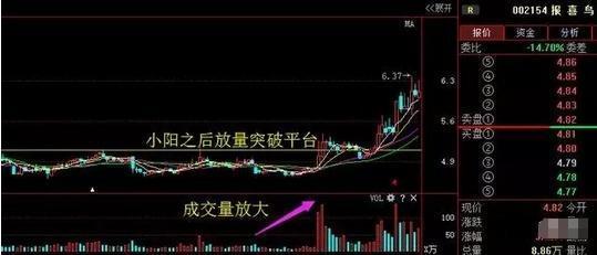 2. 002154在2016年10月13日的时候在经过长时间地量横盘之后,突然出现放量长阳,并且把前期横盘的平台突破,这就是典型的“蛟龙出海”形态,后期迎来了一波大爆发。