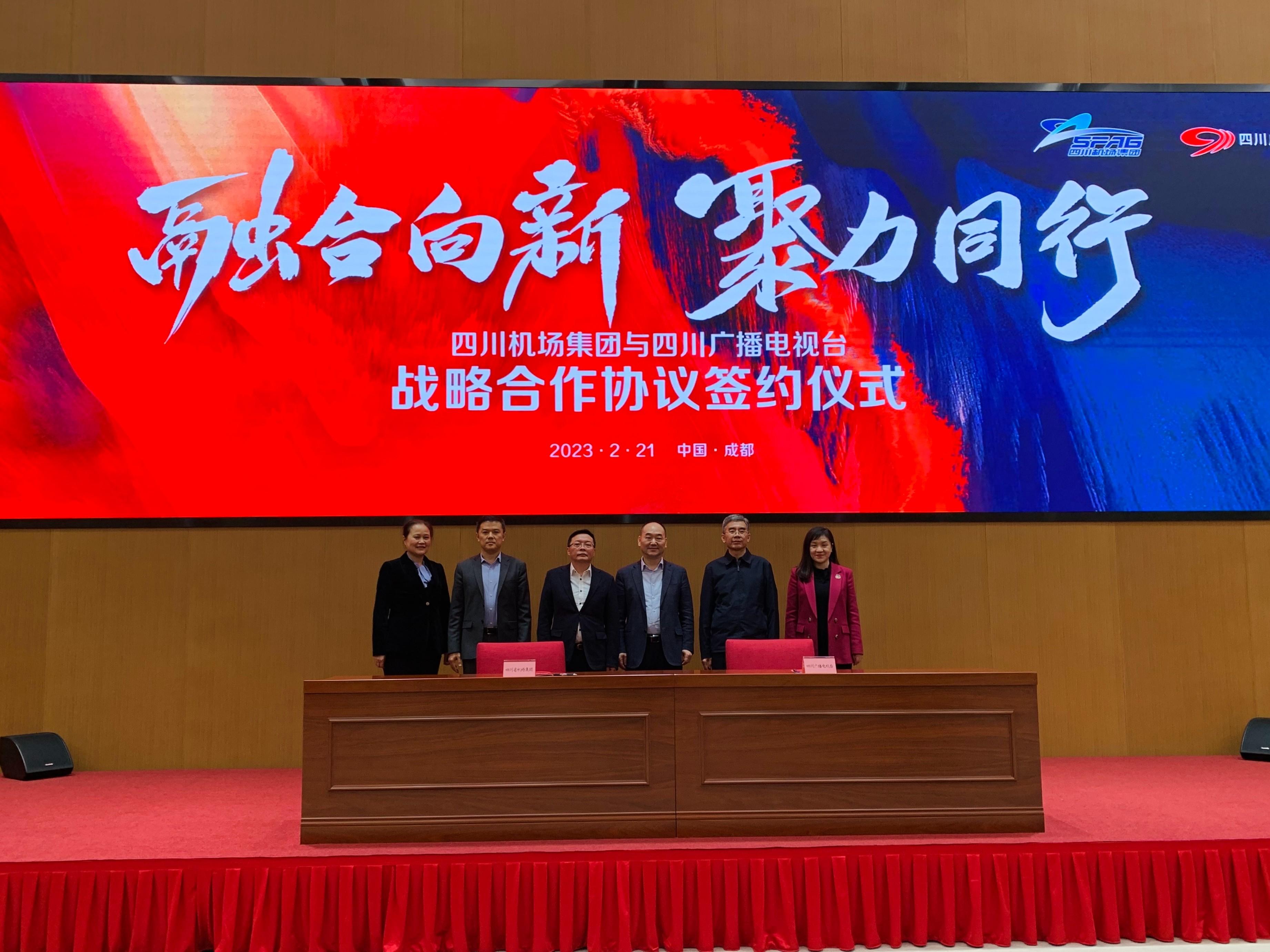 2月21日,在四川广播电视台多功能厅,四川省机场集团有限公司与四川广播电视台成功签约,双方正式达成战略合作关系。