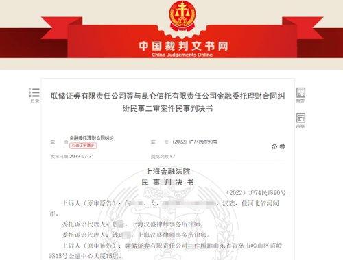 近日,中国裁判文书网公布的一起判决书显示,投资者闫女士在2017年2月斥资百万购买联储证券旗下的“聚诚15号”资产管理计划。但在2018年7月提前到期后,迟迟未能收回投资款,遂向法院提起诉讼。