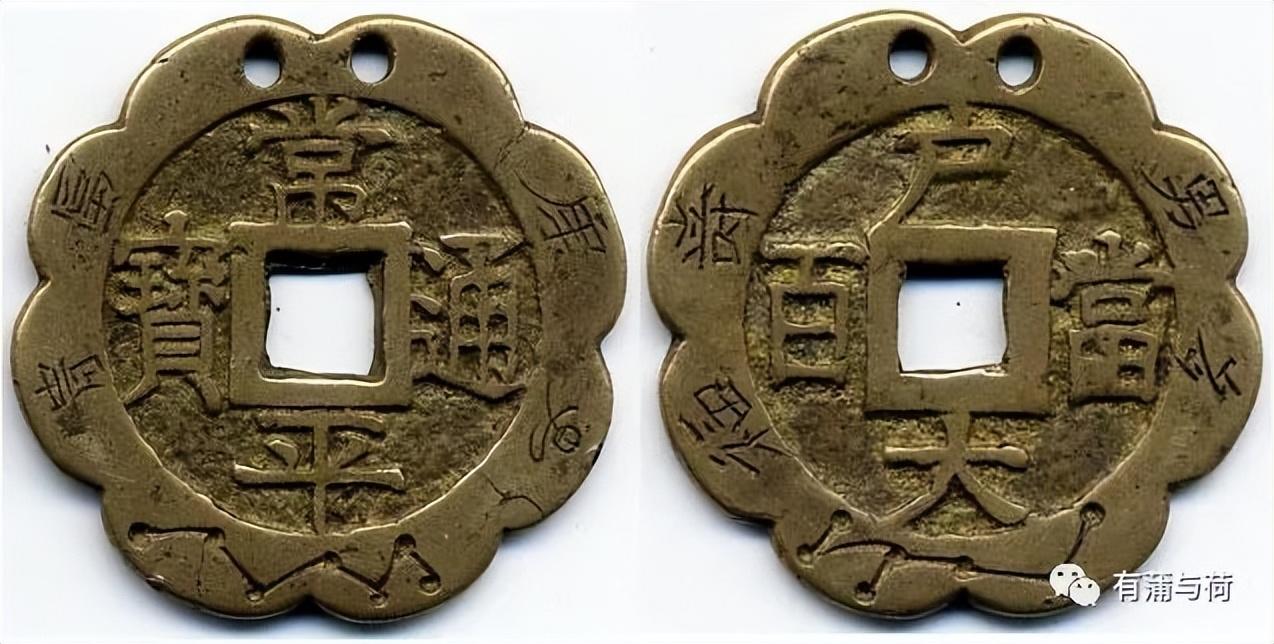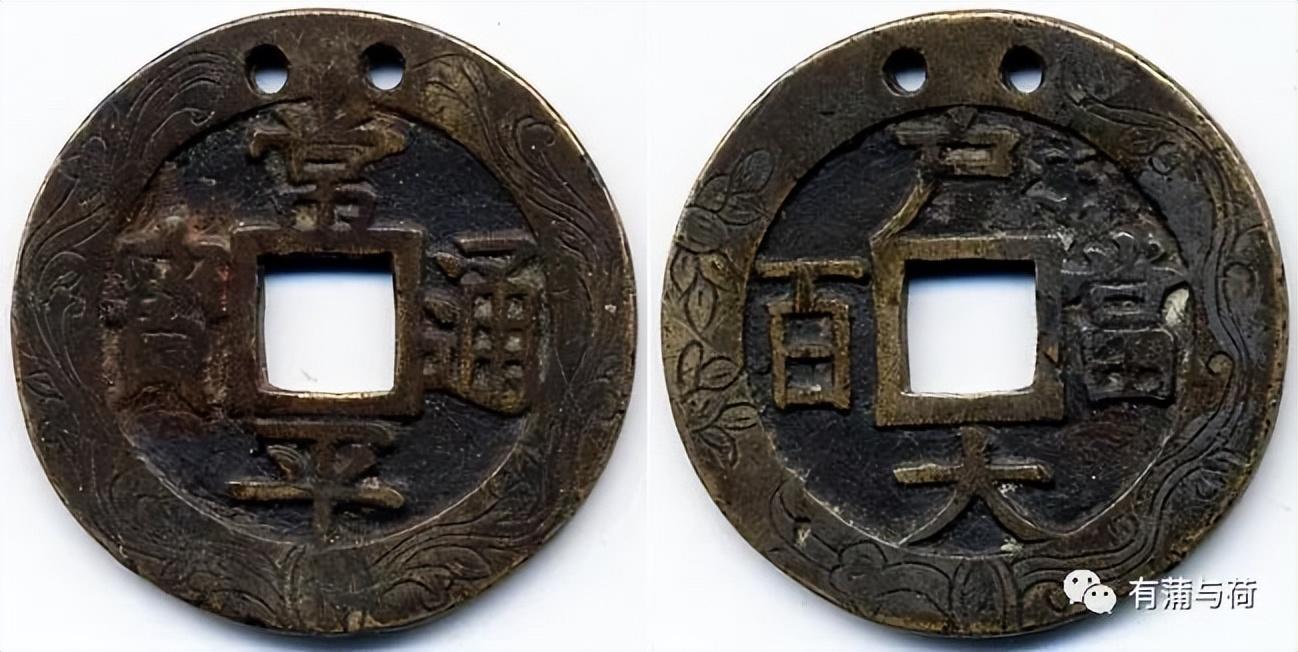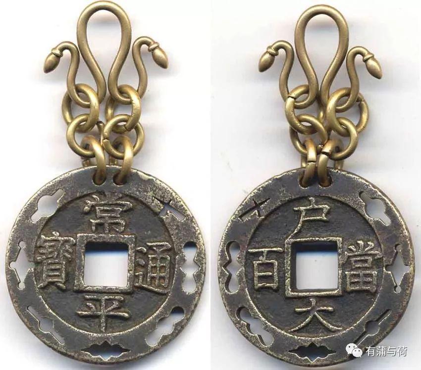 朝鲜民间多有加工民俗钱,户大当百是一大门类,加工钱并不是随意穿凿,通常都是由手艺娴熟的工匠们,在边缘修饰出花朵,纹饰等图案,在那个时代还有很多特别的需要,挂在房梁或作为结婚用品流行,祈愿五福和长寿等美好愿望.