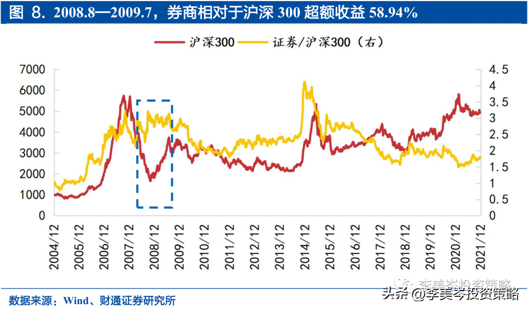 2008.8-2010.4券商板块估值从3.27倍上涨至5.4倍。
