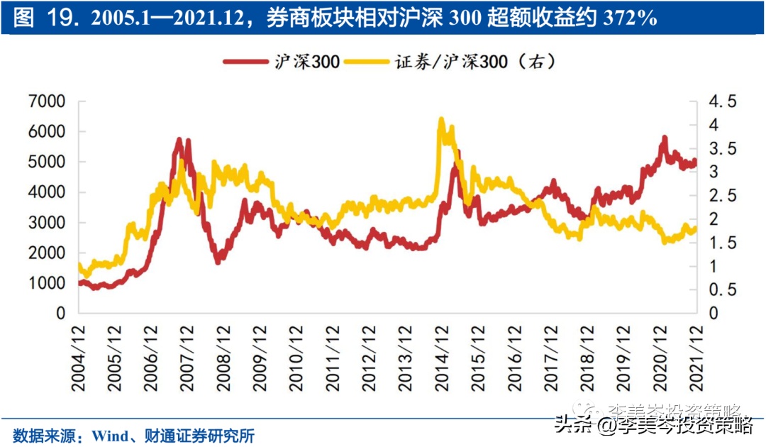 自2005年至2021年的17年间,券商总涨幅为774%,同期沪深300指数涨幅为402%,整体超额收益为372%。