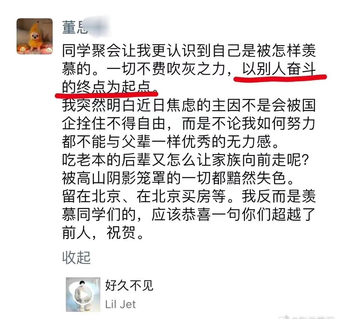 董小姐曾发过这样一条朋友圈:同学聚会更让我认识到,我是怎样被羡慕的。