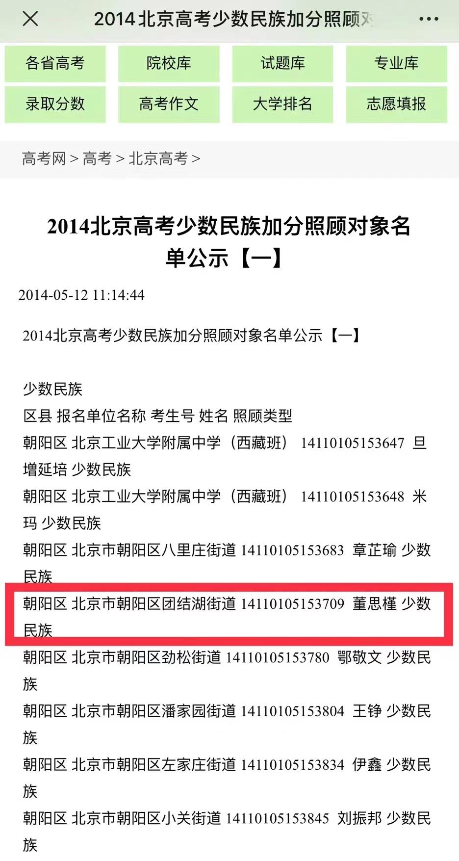 2014年,19岁的董小姐得益于少数民族加分政策,顺利被中国石油大学录取。