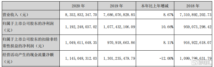 具体看这份财报,截止2020年12月31日,索菲亚2020年全年的营收为83.5亿元,同比增长8.67%;归母净利润11.9亿元,同比增加10.7%。