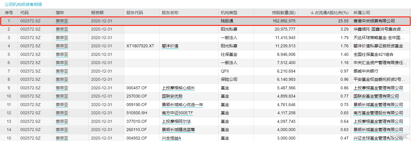 机构抱团瓦解之后,资金转而流向业绩表现较好的二线蓝筹,索菲亚就是其中的代表。截至去年底,索菲亚被陆股通持股25.55%,并获多家基金青睐。