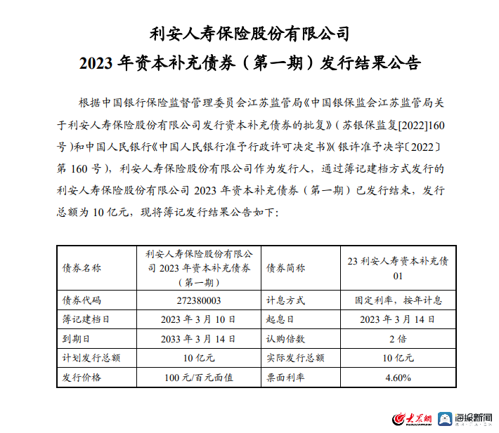 近日,利安人寿保险股份有限公司发行10亿元资本补充债券,本期债券期限5+5年期,在第5年末附有条件的发行人赎回权,票面利率4.6%。据悉,这是继去年7月21日发行第一期债券后,利安人寿在不到一年时间内发行的第二笔资本补充债,总金额20亿元,本次债券的发行得到了市场的广泛关注,险企如此“补血”,原因恐不简单。