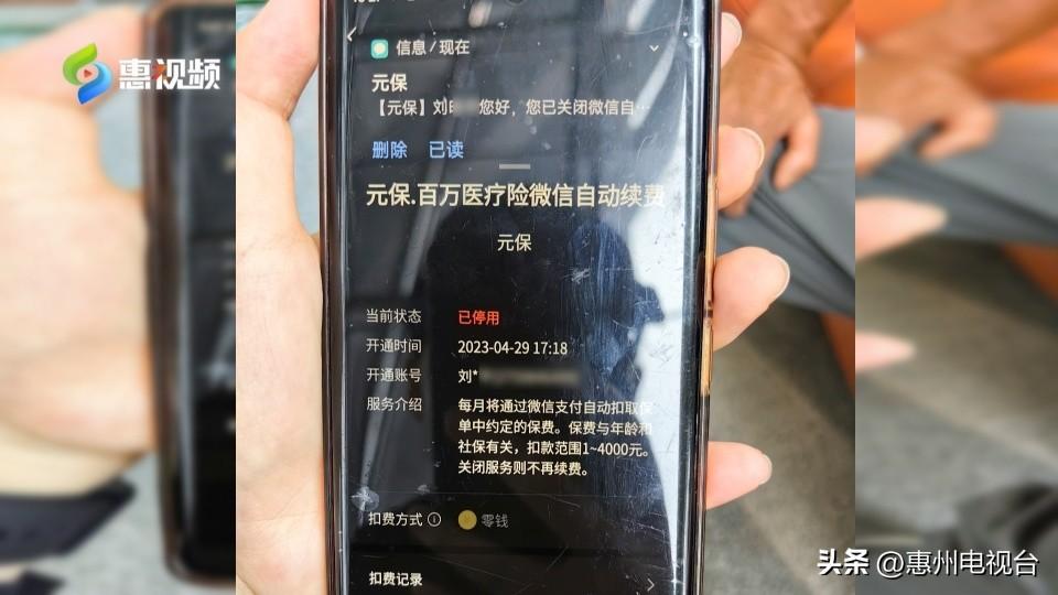 从刘先生提供的支付截图上,记者看到,扣费项目为元保·百万医疗险微信自动续费,自动扣款额度为1——4000元,每月将通过微信支付自动扣取保单中约定的保费,但是刘先生表示,他并未开通过自动续费业务。