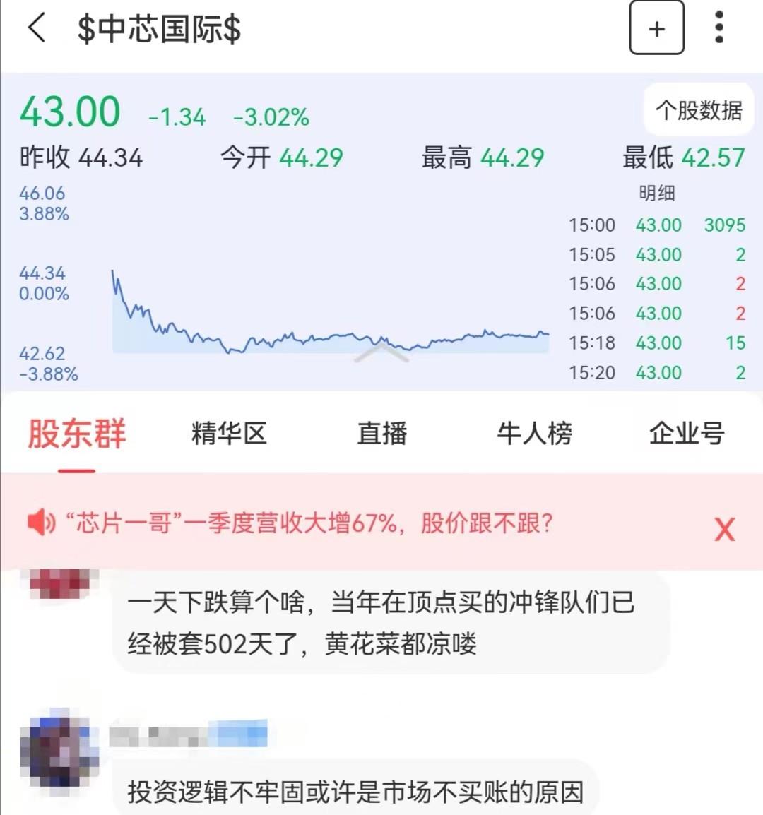 “被套502天”!中芯国际距高点暴跌3600亿,信仰还在吗?-最新资讯中芯国际股票