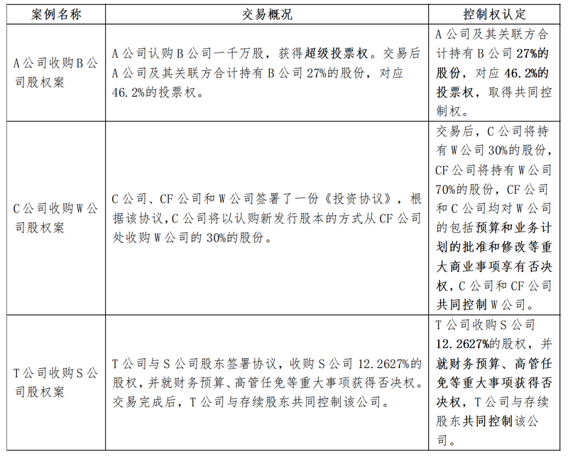 在股权投资交易中是否取得控制权的认定,是实践中的难点,本文第二部分结合相关案例进行阐述。