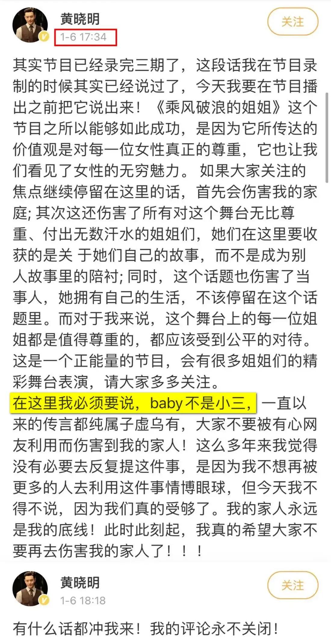 完全不顾及丈夫黄晓明的事业,面对Baby 这波操作,黄晓明为了让这事圆满结束,最终,宣布退出《浪姐》。