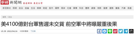 据台湾“中时新闻网”16日消息,由于新冠疫情等原因,美国尚未交付的对台军售项目金额已累计达到142亿美元(约合904.7亿元人民币)。台前“空军副司令”张延廷针对此事评论称,