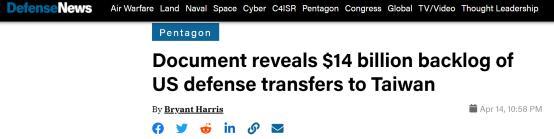 报道援引美国“防务新闻”网站14日消息,由于全球新冠疫情引发供应链出现问题,目前美国尚未交付的对台军售项目金额已累计达142亿美元。自2019年7月以来,台当局已同意自美国采购价值约170亿美元(约合1083亿人民币)的军备。