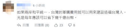 “如果两岸和平统一,台湾的军购费用就可以用来建设造福台湾人。