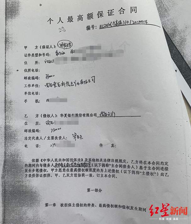 此后,他们二人先是从法院调取材料,在一份保证金额3920万元的《个人最高额保证合同》上,项招辉看到,这份合同由南昌索克斯信息产业有限公司与华夏银行南昌分行签订,签订时间为2015年5月6日,签署的是项招辉的名字并按有指纹,由此,他必须承担连带的还款责任。