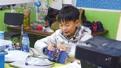 何宜德在学习机器人操作,为机器人四级考试做准备。记者 卫潇雨