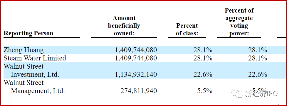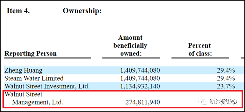 2)英属维京群岛公司Walnut Street Management, Ltd持有3.88亿股普通股,占比8.1%;