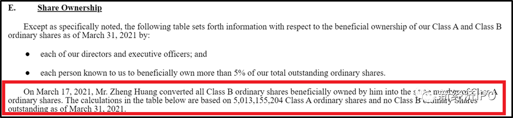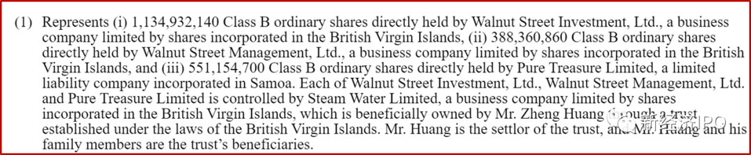 这部分股份来自黄峥控制的离岸公司Walnut Street Management, Ltd,原来持股3.88亿股B类普通股,捐赠后持有2.75亿股B类普通股。