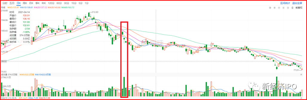 这也是接下来5个月的最高价,拼多多股价由此开始了漫漫下跌,截至8月17日,拼多多股价跌至79.45美元,不到半年跌幅接近腰斩。