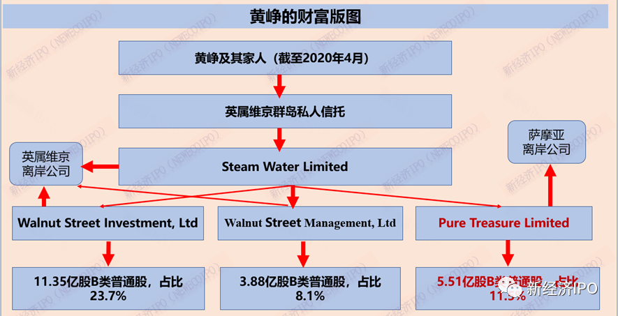 截至2021年3月17日,黄峥通过英属维京群岛公司SteamWater Limited持有14.097亿股拼多多A类普通股,占总股份28.1%。