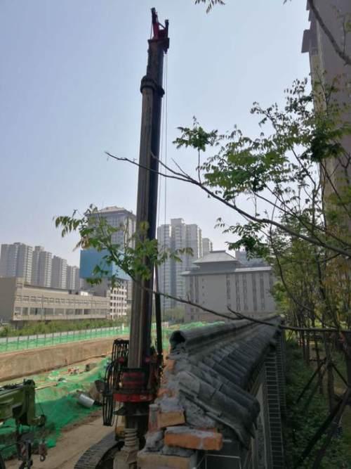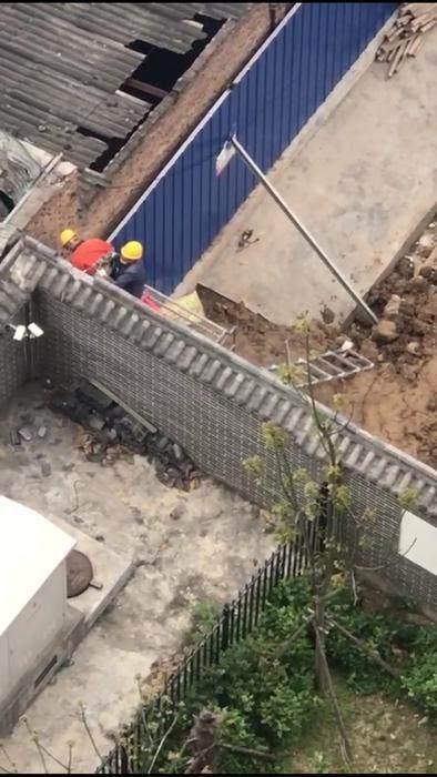 4月12日,华商报记者在这里看到,小区北围墙已经被拆了一个豁口,距离墙体不远拉着警戒线。这段墙的东段还用很多道钢筋斜拉着,看起来似乎是为了防止墙体向外倾倒。