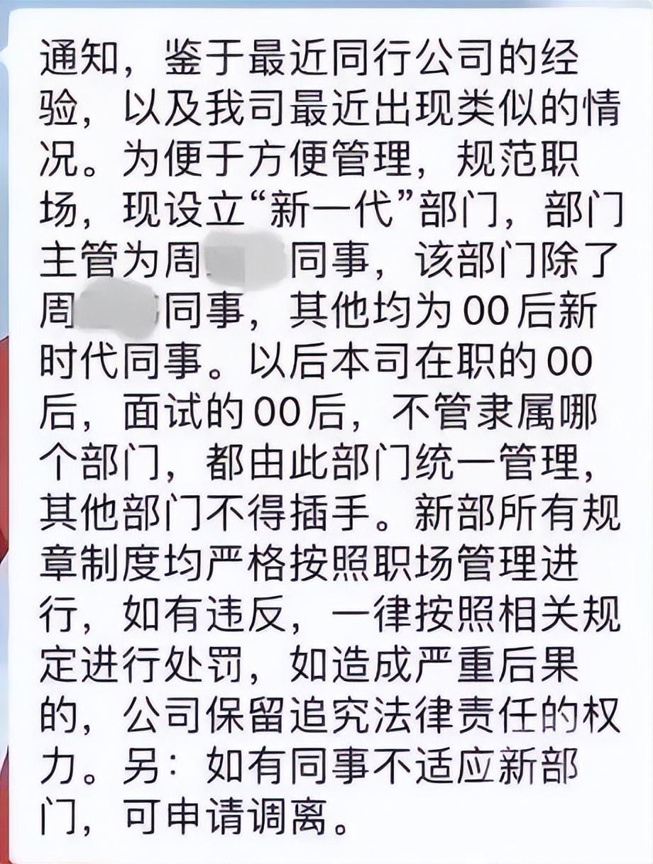 比如这个设立“新一代”部门,其他部门不插手,只要是00后,就由此部门统一管理,也是绝了,为了00后也是煞费苦心。