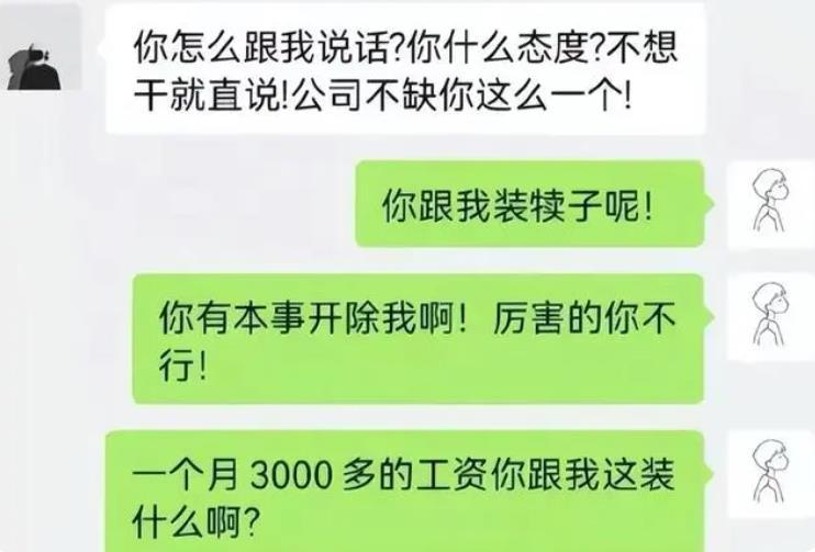 老板看了大学生硬气的态度都有些着急,但即便如此,大学生也不收敛,依然回怼称:“有本事就开除,一个月3000都装什么啊”!