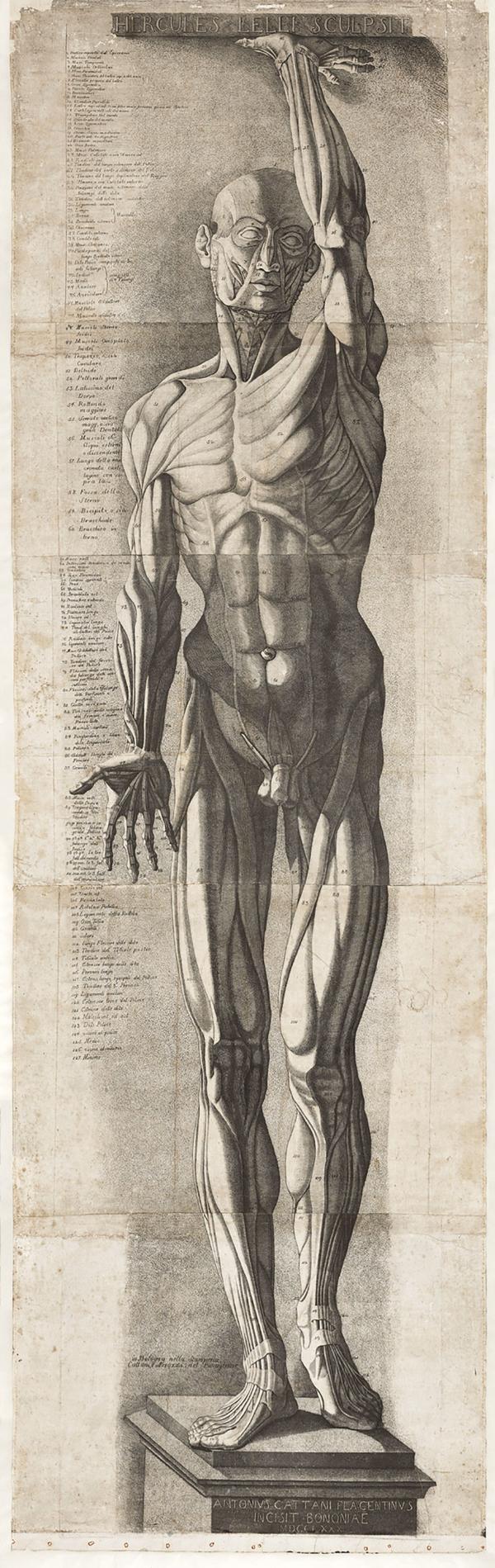意大利版画家安东尼奥·卡塔尼(Antonio Cattani)制作的三幅真人等身版画出现在展览的显眼位置。其中两幅是根据埃科尔·莱利为阿奇吉纳西欧宫市政图书馆制作的女雕像所绘,另一幅描绘的是莱利和蜡解剖模型专家乔瓦尼·曼佐利尼(Giovanni Manzolini)为博洛尼亚科学院共同制作的蜡解剖模型。