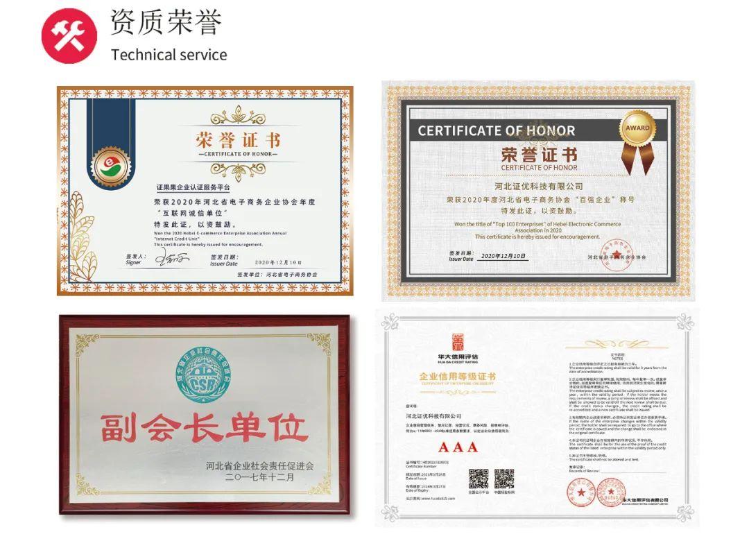 证果果从事多年,收到很多企业的好评,也获得了一些资质荣誉: