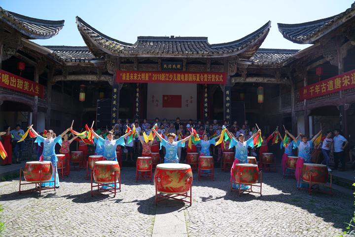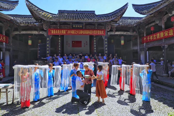 7月14日上午,“谁是未来大明星”2018浙江少儿微电影国际夏令营开营仪式在江山大陈历史文化村举行。