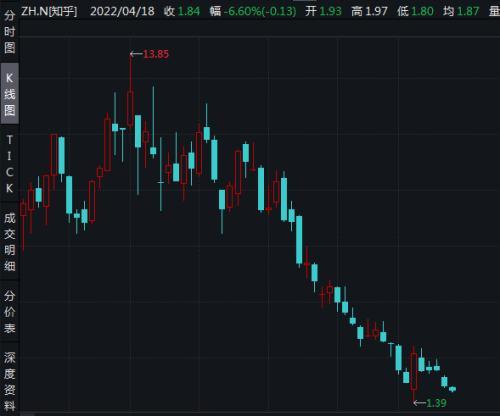 而即使此番发售新股,价格或也未必理想,因为在美股市场,知乎股价遭遇重挫。
