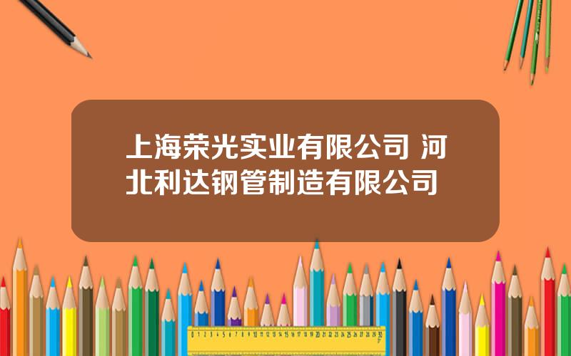 本篇文章给大家谈谈上海荣光实业有限公司,以及河北利达钢管制造有限公司对应的知识点,文章可能有点长,但是希望大家可以阅读完,增长自己的知识,最重要的是希望对各位有所帮助,可以解决了您的问题,不要忘了收藏本站喔。